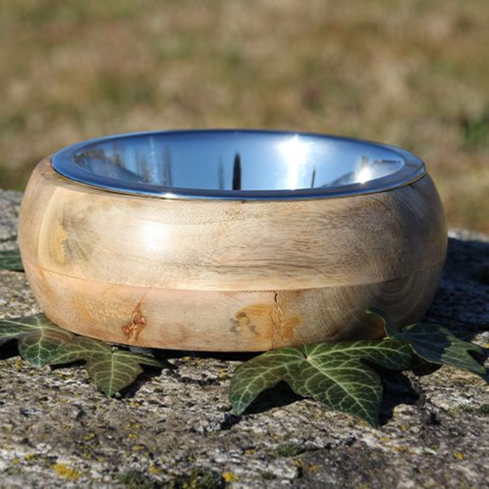 Le socle en bois véritable apporte un charme chaleureux et haut de gamme. Chaque pièce présente de légères nuances naturelles, ce qui rend la gamelle unique.