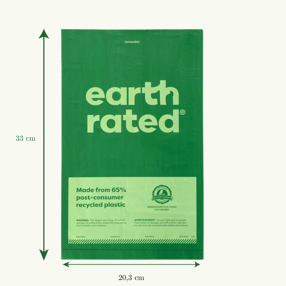 Earth Rated choisit des matériaux contrôlés et engagés. Chaque sac est fabriqué à partir de 65 % de plastique recyclé post-consommation certifié.